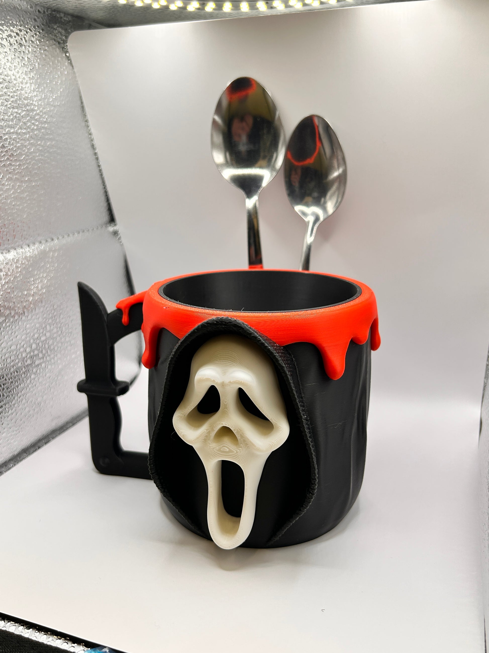 Painstakingly detailed to capture the iconic mask, complete with sinister blood-red drips and a menacing knife handle, this isn't just an ice cream holder; it's a statement piece for the ultimate horror aficionado. It’s the perfect companion for late-night viewings, Halloween parties, or any time you want to add a slash of fun to your sweets.